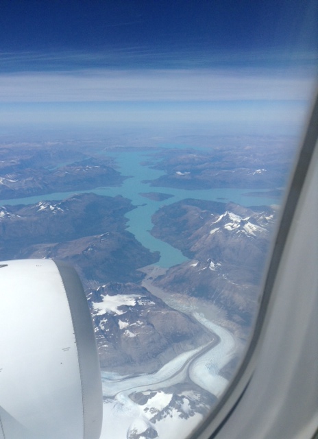 I pass the time chatting to a guy from Denver who is doing some trekking through Patagonia with 10 other travellers as Gail has managed to get a window seat in row in front of me.