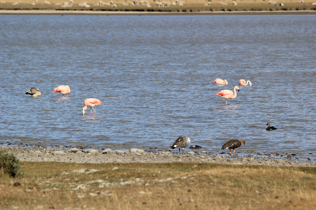 Make our first acquaintance with a choique, an emu-like bird which we will see many more times during our trip. Other animal life includes flamingos, a fox, a llama, black-necked swan and we have the chance to view some gauchos move a large flock of sheep with the help from some collie hybrid dogs. It certainly makes a change from watching Lyn’s border collie Indi trying to round up any dog which has even a passing resemblance to a sheep along the beach in front of our house back home!