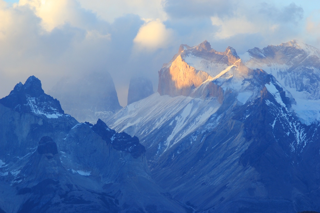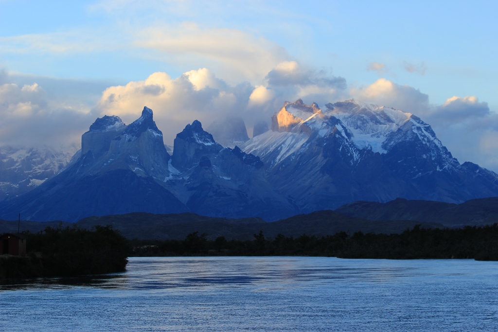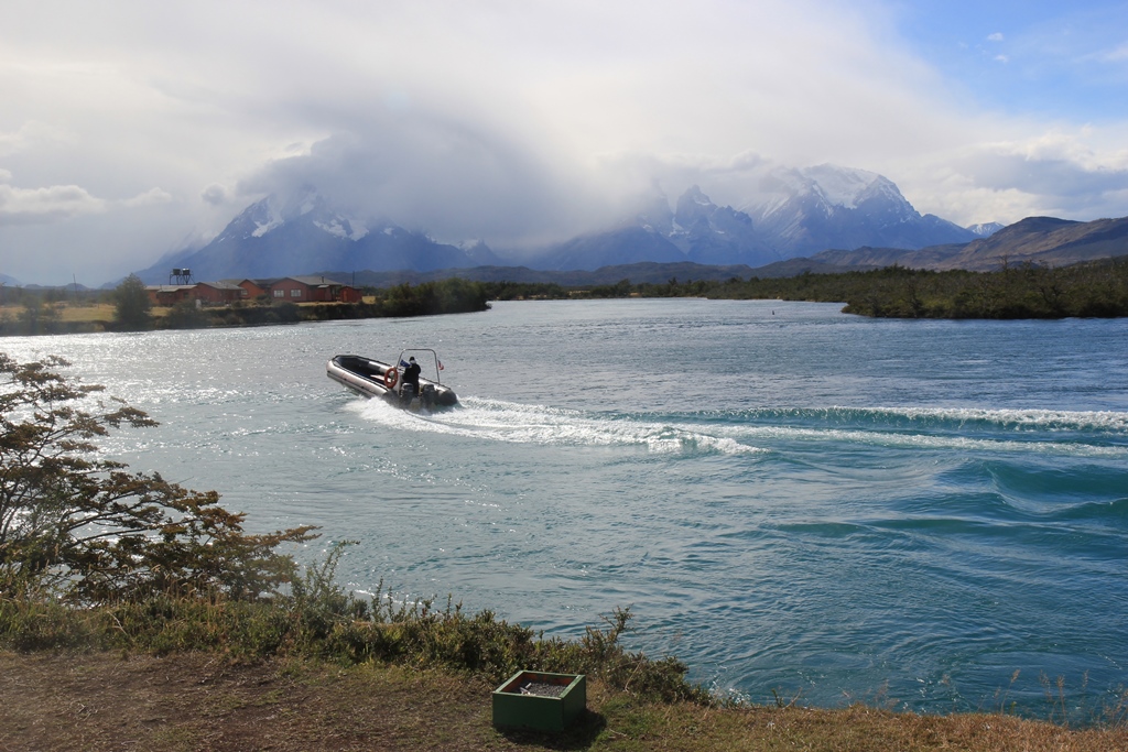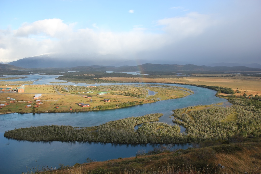 By now we are catching tantalising glimpses of Torres del Paine towers in between the clouds and with each bend in the river the scenery becomes more spectacular.