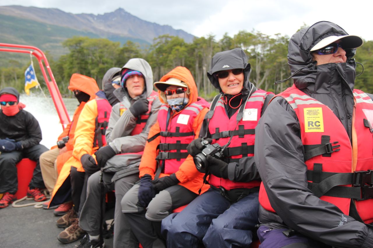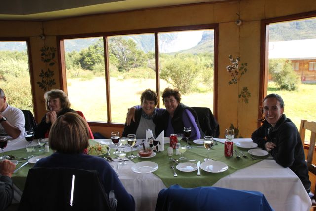 We continue on to a lunch stop at Hosteria Monte Balmaceda where after a meal we change into our wet weather gear and board a zodiac for the onward journey up the Rio Serrano, stopping at an impassable waterfall, the Salto Rio Serrano,to circumvent the fall on foot, then re boarding the zodiac. The new zodiac skipper seems to take some delight in demonstrating how rough this part of the river can be and those of us who suffer from periodic lower back pain are searching for information on wheelchair access for the various tracks in the Torres del Paine Nat. Park. Fortunately the discomfort is short-lived and the Rio Serrano becomes far more friendly as we approach our final destination for the night.