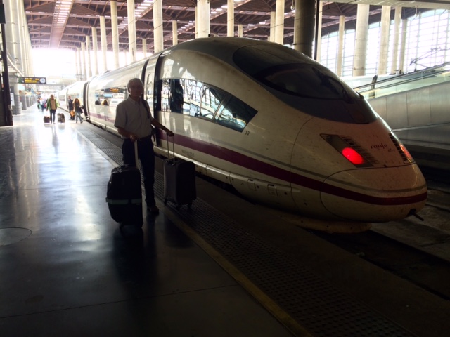 After a couple of hours we head back to the hotel, pick up our suitcases and on the advice of the hotel concierge drag them across the Plaza Sol and quickly hail a cab to the railway station. Surprise, surprise our friendly little cab driver, through no fault of his own, ends up behind a procession of senior citizens protesting about pensions ( or maybe lack thereof ). Now at least we have a cause with which we can identify!
