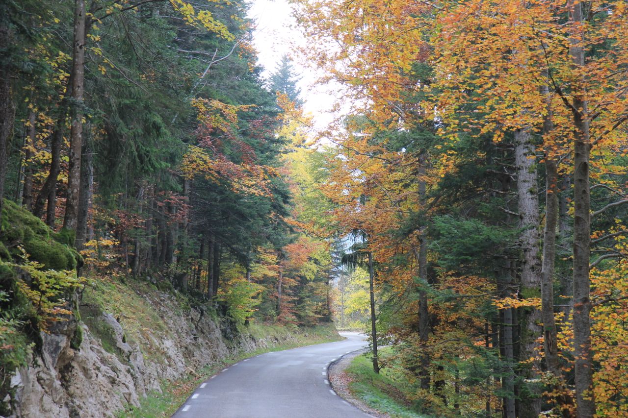 Gail has mapped out a route back to Grenoble which takes us on a detour via the south west part of the magnificent Parc National Regional du Vercors. This turns out to be even more adventurous than expected as when we arrive at the junction of the C103 and the D531( which is supposed to get us back to Grenoble fairly quickly ) the road is blocked off in both directions. However, as this delay occurs at the spectacular Pont de Goule Noire, a well-known potholing and caving area.Some useless info for you. Apparently the correct term for a cave-explorer is a spelunker and the science of studying caves is speleology. Don’t you all feel much better knowing that!