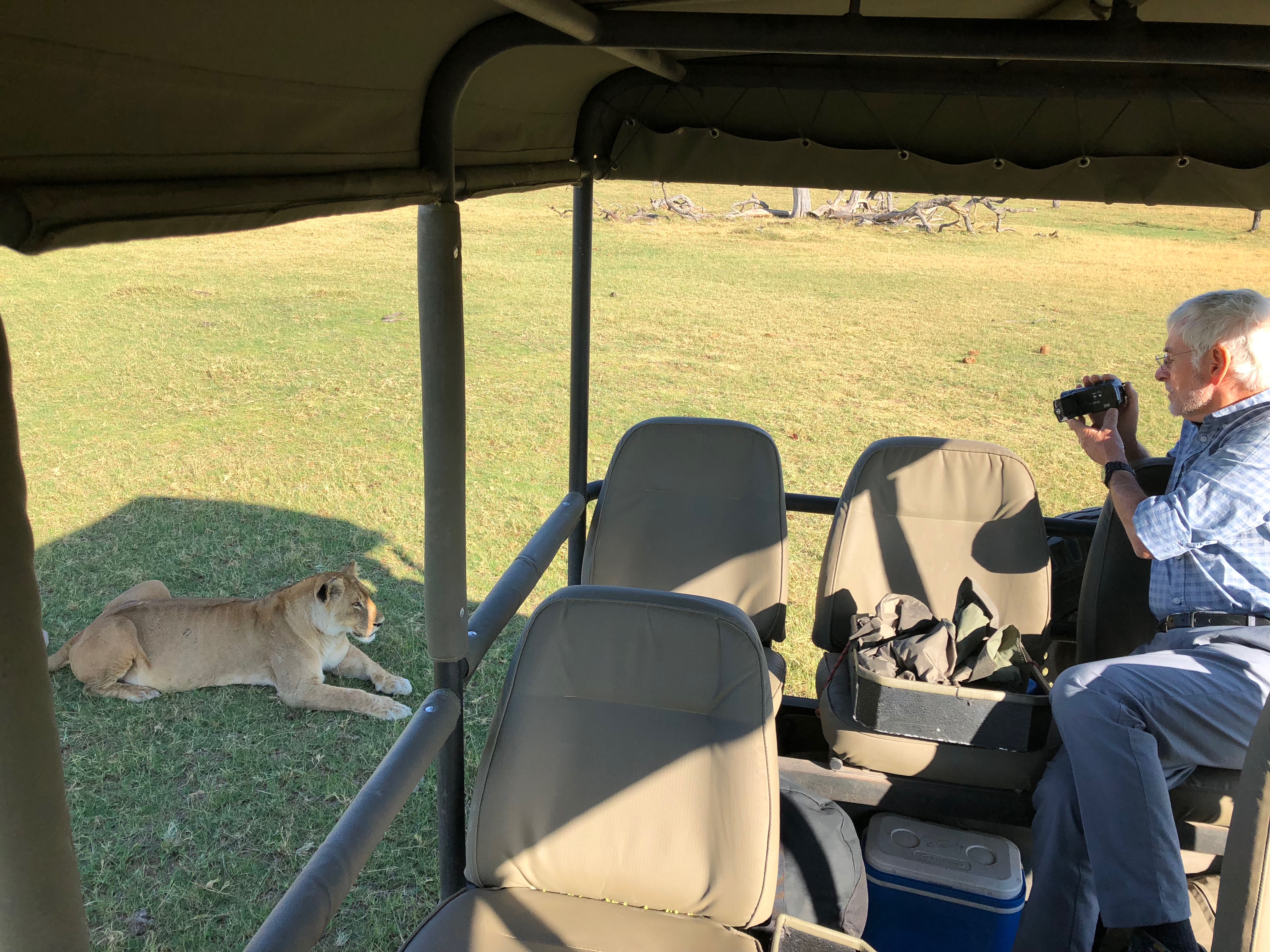 It’s then on to the impressive, if ugly, Ground Hornbill before the ‘piece de resistance’ for this last day at Moremi, a magnificent lioness sitting in the shade of another safari vehicle carrying a small group of tourists.